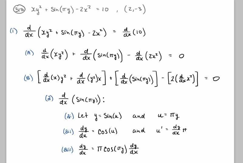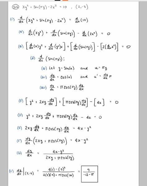 ##xy^2+sin(πy)-2x^2=10## at point ##(2,-3)##