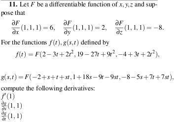 I'm at the f'(1) part. I differentiated each component of F(2 – 3t + 2t^2, 19 – 27t + 9t^2, -4 + 3t + 2t^2) to get f'(t) = F(-3 + 4t, -27 + 18t, 3 + 4t) and then f'(1) = F(1, -9, 7). I'm not entirely certain if what I did is correct so far. If it is, what do I do next? If I omitted something important, tell me.