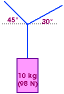 how do I find the force of tension on two ropes supporting a box (mg=98N) if the angle that the ropes form are not equal to one another?