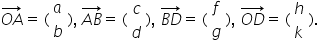 The discussion focuses on determining the values of h and k given the integers a, b, c, d, f, and g using vector equations. The key equation provided is $\vec{OA}+\vec{AB}+\vec{BD}=\vec{OD}$, which establishes a relationship between the directed line segments. Participants suggest using vector addition and geometric interpretations to solve for h and k effectively.