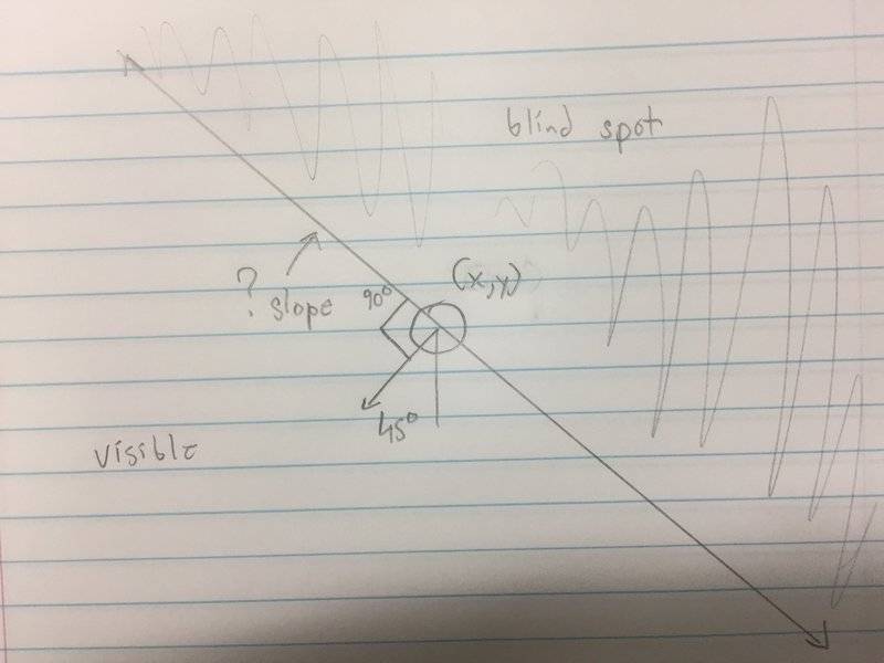 Perpendicular to their angle is a line that defines the location that is out of view to them. How can I find the slope of this line with just a single point and an angle?