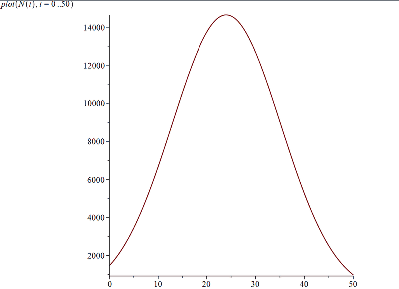 The discussion revolves around finding the maximum value of the function N(t) without using calculus. The function is presented as N(t) = 1456 * 0.996^(t^2 - 48t), and participants explore methods to determine the maximum value through algebraic techniques and reasoning.