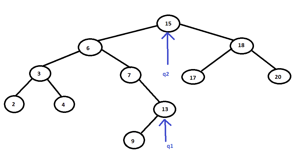 How will we find the next of the node to which q2 points, in the in-order traversal?