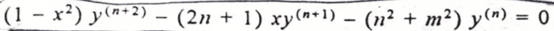 \left (1-x^2 \right ) \; y^{(n+3)} &= (2n+3)\;x \; y^{(n+2)} + (n^2+ 2n+1+m^2)\;y^{(n+1)} \\ \ \\