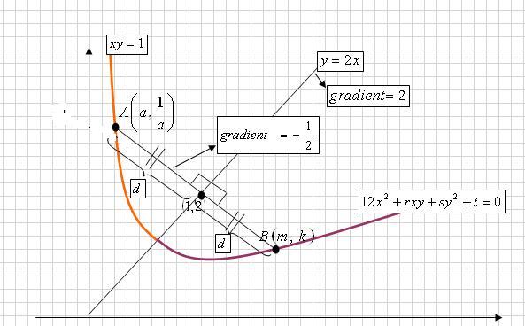 The graph $xy=1$ is reflected in $y=2x$ to give the graph of $12x^2+rxy+sy^2+t=0$. Find $rs$.