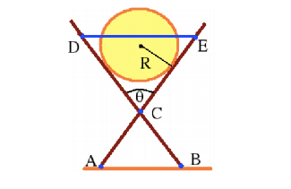 The discussion revolves around determining the tension in a horizontal rope (DE) that is part of a system involving a cylinder lodged between cross pieces at an angle θ. Participants explore the forces acting on the cylinder and the rails, focusing on static equilibrium and the application of free body diagrams (FBDs). The conversation includes technical reasoning and mathematical expressions related to the problem.