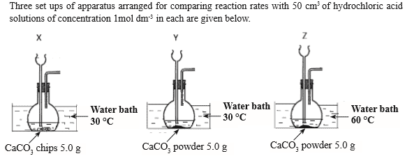 i.If all the calcium carbonate used in set up X was used up for the reaction, what is the amount of moles of carbon dioxide produced during the reaction ? (Ca = 40, C = 12, O = 16)