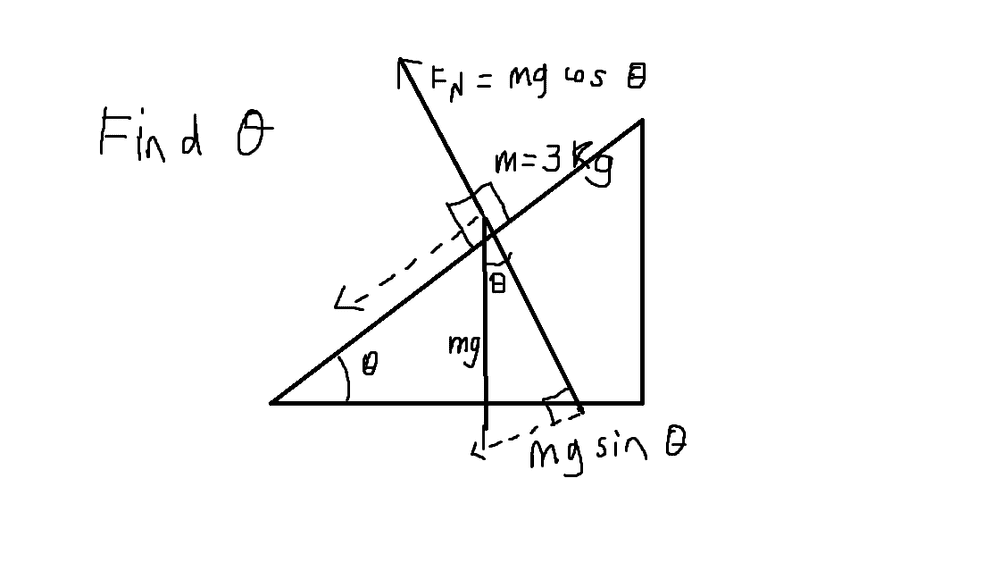 I originally tried simple right-angle trig (sin θ =opp/hyp), but that just ends up as sin θ = sin θ , as well as cos θ = cos θ.
