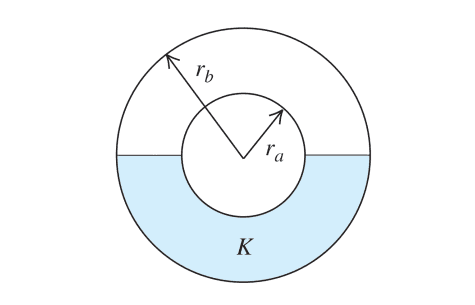 - An isolated spherical capacitor has charge + Q in its interior (radius ra) and charge −Q in its outer conductor (radius rb). Then half the volume between the two conductors is filled with a dielectric liquid with constant K. I will attach a picture with the drawing.