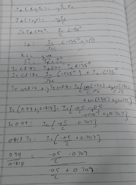 Participants express uncertainty about the assumptions made in their calculations, particularly regarding the treatment of phase angles and the use of scaling factors like √2. There are unresolved mathematical steps related to the application of KCL and phasor analysis.