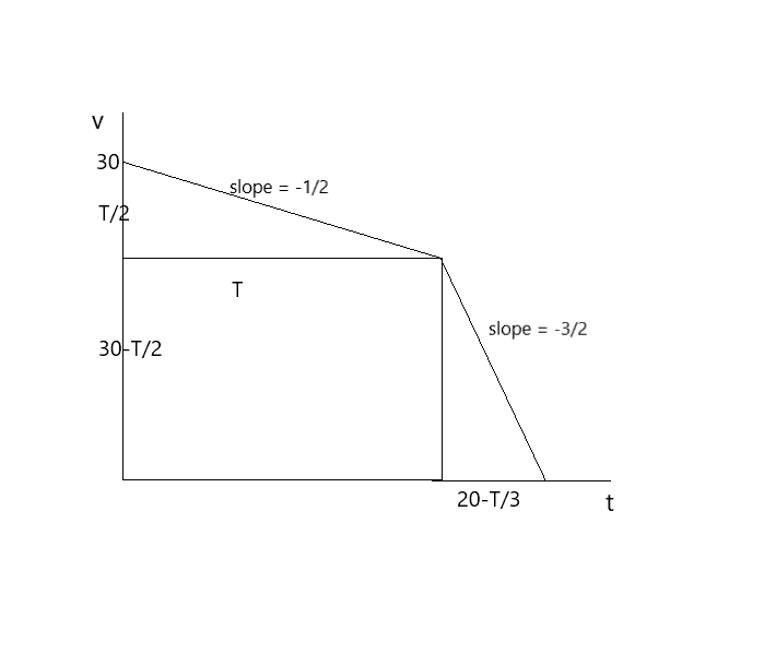 Now the graph of ##v=30-1.5t## will give us some perspective on how it relates to the graph of ##v=30-0.5t## at some point...noting that the desired graph will be parallel to ##v=30-1.5t##.