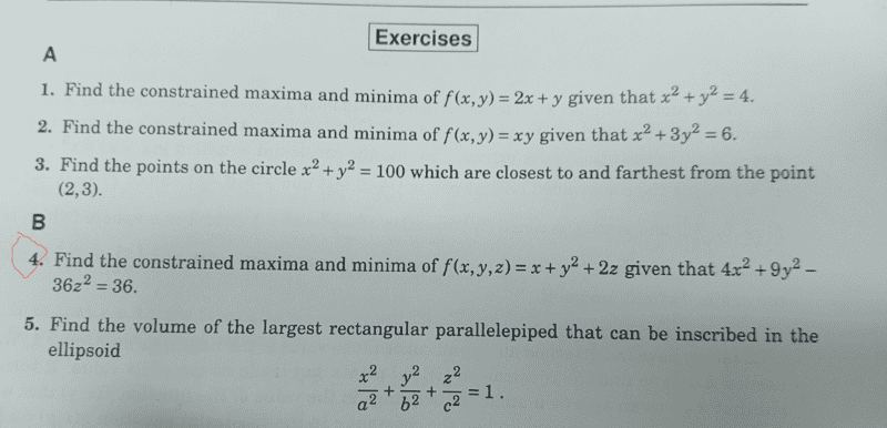 ##f(x,y,z) = x+y^2+2z## and ##g(x,y,z) = 4x^2+9y^2-36z^2 = 36##