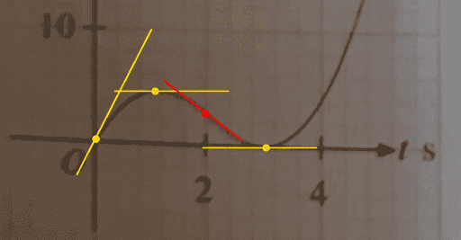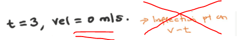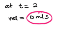 at time ##t=1##, also reffered to as being intantaneously at rest, at this point we have acceleration ##a=0##,