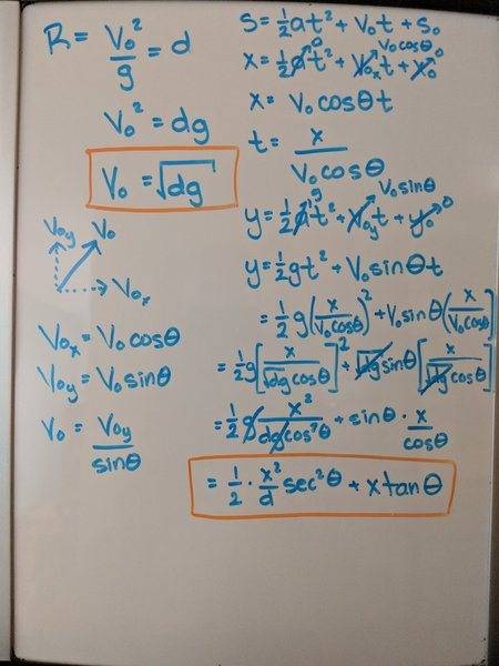 y = xtanθ - (1/2d)x2(secθ)2 = 0