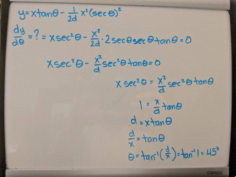 Which kinda makes me feel better as it results in the same thing and gives me the impression that I'm on the right track at least.c. y = xtanθ - (1/2d)x2(secθ)2