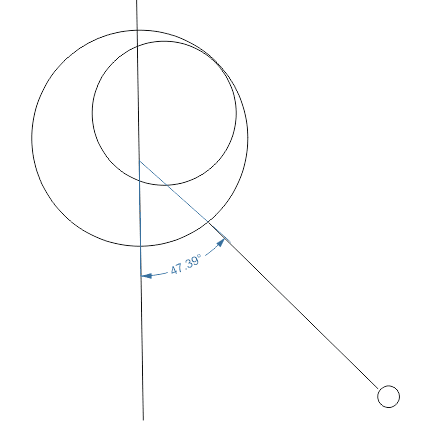 Participants are navigating through the complexities of the geometry and the forces involved, questioning the assumptions about the position of the mass relative to the point of contact. There is a mention of a potential misunderstanding regarding the angles involved in the system.