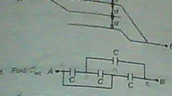 Find equivalent capacitance between A and B of the given figure (pardon camera quality)