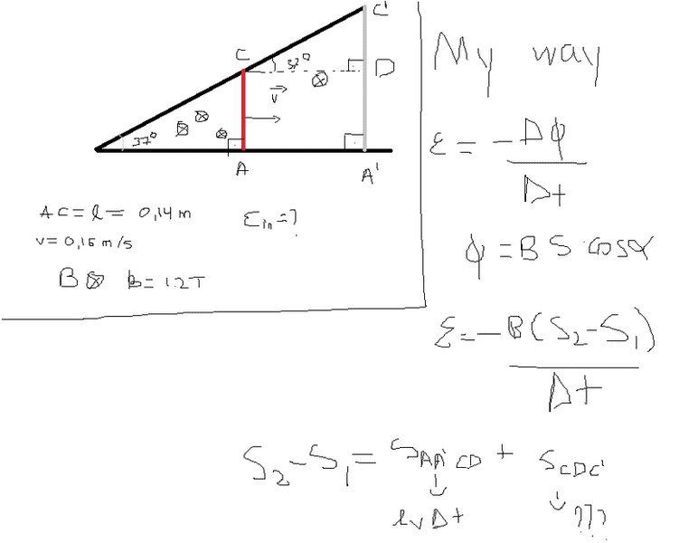 The discussion revolves around finding the induced electromotive force (EMF) in a scenario involving a slider moving along a contour at an angle of 37 degrees. The problem includes parameters such as the speed of the slider and the dimensions of the contour, but lacks clarity in its description and setup.