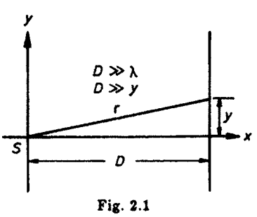 Now, i pretend to use $$r \approx D$$ outside the cos, and $$r = \sqrt{ D^2 + y^2} \approx D(1+(y^2)/(2*D^2))$$ inside it.