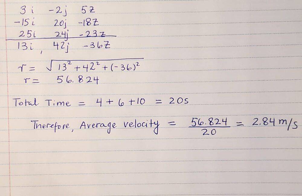 - The drone flies in a straight line, and records how much time it took. Each new motion is relative to the present position. Meaning, a motion of (5i,0j,0k) followed by ( 5i,0j,0k) moves a distance of 10m. The following inputs were given, with their corresponding times in flight: