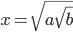 chart?cht=tx&chf=bg,s,FFFFFF00&chco=000000&chl=x%3D%5Csqrt%7Ba%5Csqrt%7Bb%7D%7D.png544 bytes · Views: 1,027 -