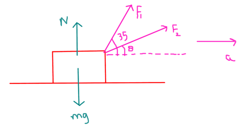 $$ F_1 \cos(\theta) + F_2 \cos(35) = ma$$