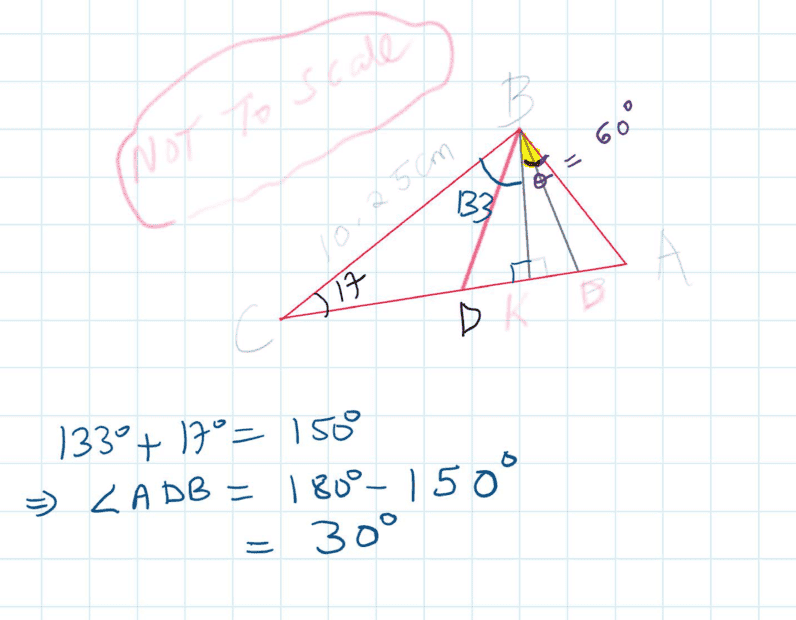Thus it follows that ##∠BDK=48.59^0## ...⇒##∠ADB=131.4^0## correct...any other approach?