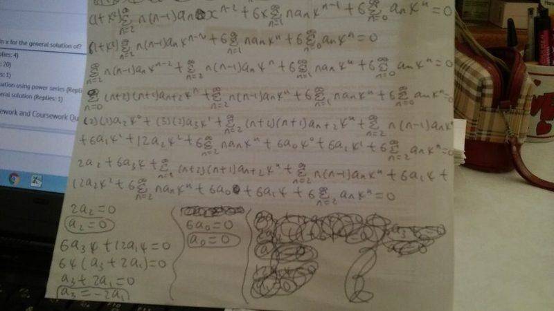 - Participants discuss deriving coefficients for the power series solution by substituting y, y', and y'' into the differential equation. There are attempts to express results using summation notation and identify patterns in the coefficients.