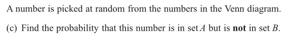 Find the probability that this number is in set A but not in set B. (please see attachments)