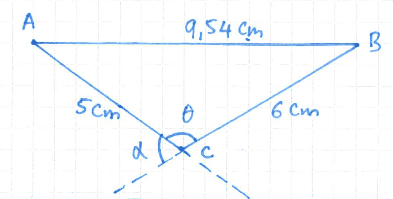 β = cos^-1 ((EC^2 + EA^2-EB^2)/(2ECEA)) = 42,65 degrees