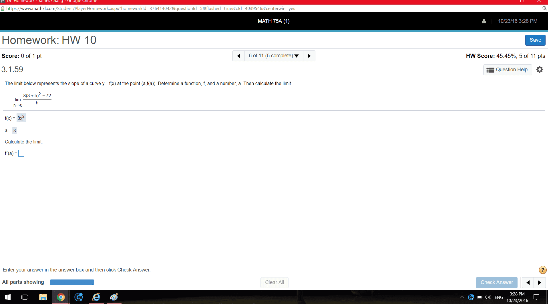 View attachment 6113After finding the f(x) and a, I did this:8(3^2+3h(3)+3h(3)+h^2)-72 dividing by h