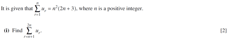 $$\sum_{r=n+1}^{2n} u_r=\sum_{r=1}^{2n} u_r-\sum_{r=1}^{n} u_r$$