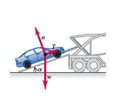 ΣFx + ΣFy = 0I'm assuming I will need to know the triangle rules to find the x and y components of the normal force, and I think this is where I'm struggling, so this might just be basic geometry skills that I am lacking. I'm guessing that the normal force is slightly reduced (not exactly equal and opposite to the weight of the car) since there is a pulling force from the cable, and the weight is shared between FT and n. Is there a different way to do this without having to break it up into two different triangles, or could someone please explain how I should start breaking it down?