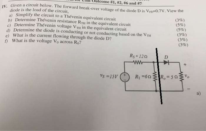 The discussion revolves around finding the Thevenin equivalent of a circuit that includes a diode as the load. Participants are addressing the steps needed to approach this problem, focusing on the methodology for calculating the Thevenin equivalent in the context of circuit analysis.