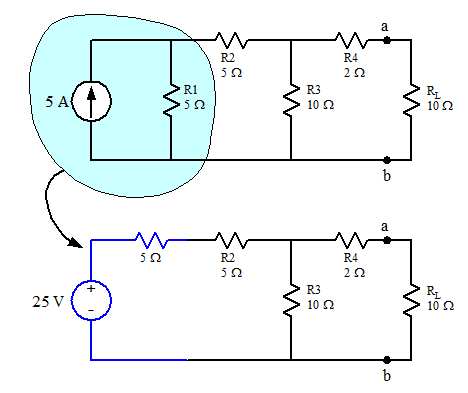 The discussion revolves around finding the Thevenin equivalent circuit external to a load resistor (RL) in a given electrical circuit. Participants engage in calculations related to resistances, voltages, and currents, while exploring the differences between Thevenin and Norton equivalents. The scope includes theoretical calculations and practical applications of circuit analysis.