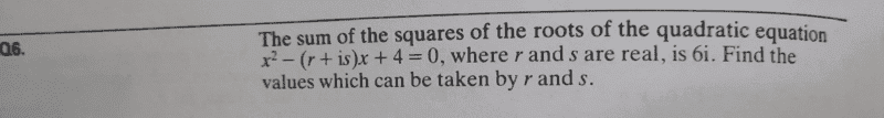 We are informed that ##α^2+β^2=6i ## then $$6i=(r+is)(r+is)-8$$ ... $$8+6i=(r^2-s^2)+2rsi$$