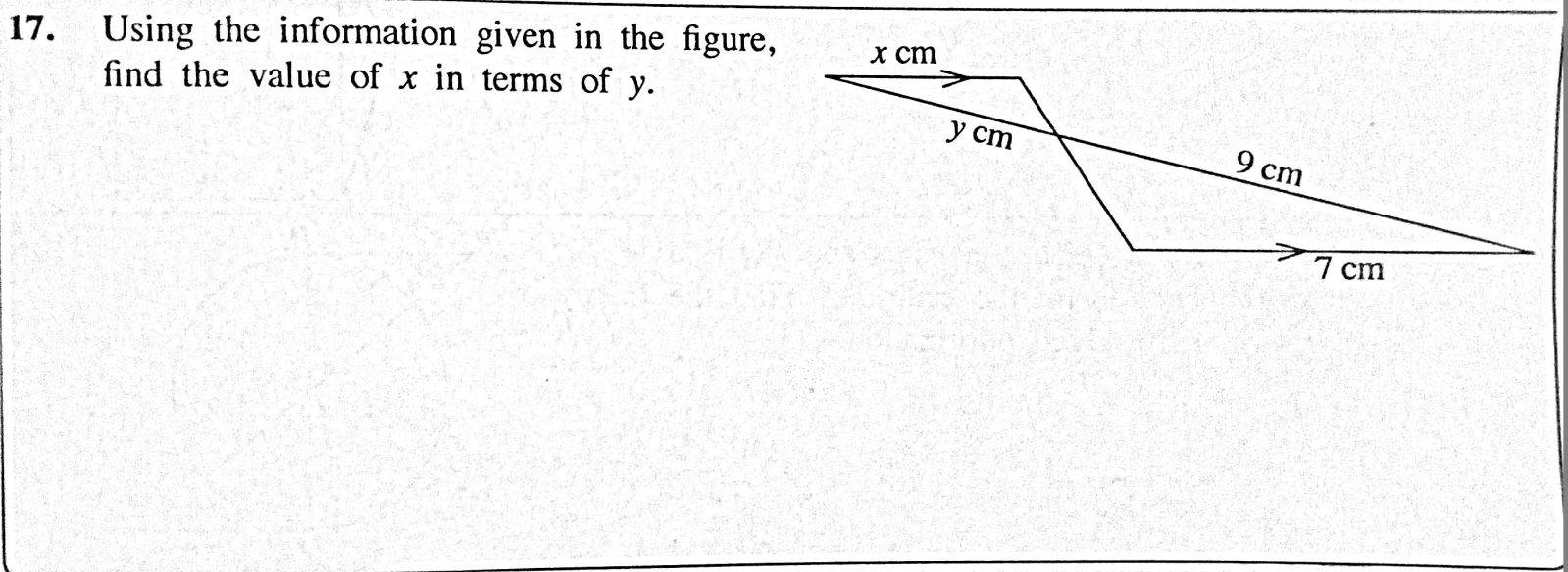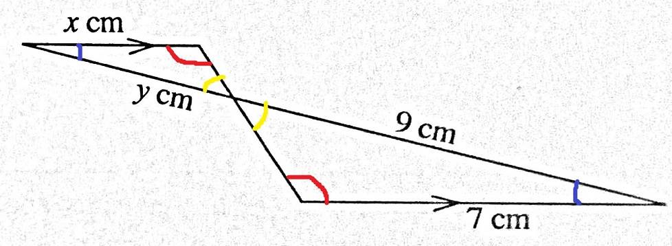 - One participant states that in similar triangles, the sides facing the equal angles are in the same ratio, leading to the equation $\frac{7}{X} = \frac{9}{Y}$.