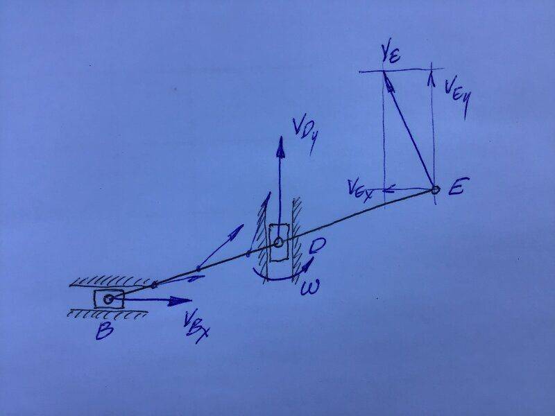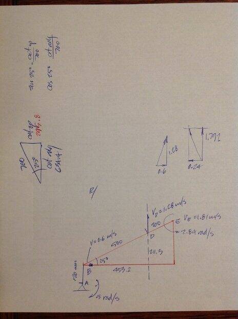 - Rod BDE is partially guided by a roller at D which moves in a vertical track. Knowing that at the instant shown the angular velocity of crank AB is 5 rad/s clockwise and that °β=25° ,determine (a) the angular velocity of the rod, (b) the velocity of Point E.