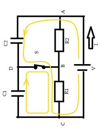 Node D is connected to node B. This means node D and B must have the same voltage. How do we decide if this is 8V or 4V? I will explain how..The voltage on node D cannot change instantly because of the capacitors...