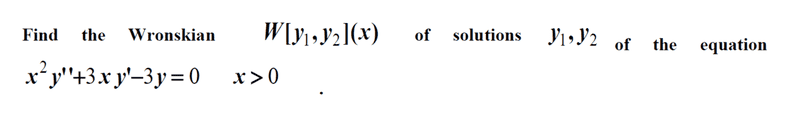 There appears to be confusion regarding the correct form of the equation and the necessary steps to derive the Wronskian, with specific attention to the terms involved and the division by x or x².
