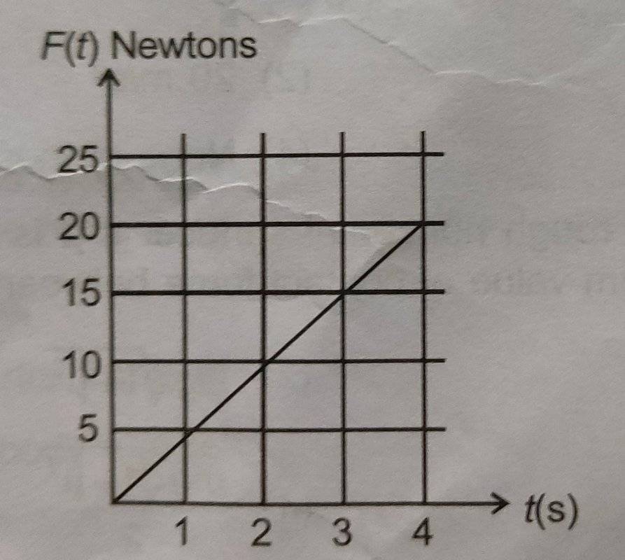 - An initially stationary wooden block with a mass of 2kg is pulled horizontally along a time dependent force f(t)i. The coefficient of static and kinetic friction between the block and the table are 0.5 and 0.25 respectively. F(t) as a function of time is shown, then find