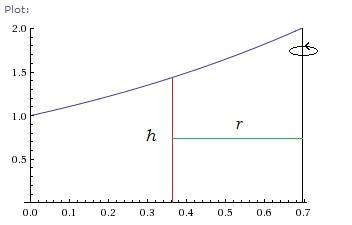 Find the volume of the solid generated by revolving the region in the first quadrant bounded by the coordinate axes, the curve y=e^x, and the line x = ln 2 about the line x= ln 2.