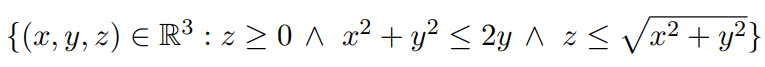 I am given this expression which represents an object in 3D and the goal is to determine its volume using multiple integrals.