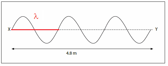 · If the time that the wave takes to move from point X to point Y is 6.0 s, determine the speed of the wave and its frequencyΔd= 4.8m