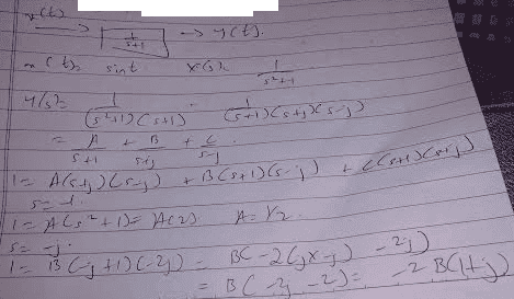 Y(s) = A/(s + 1) + B /(s+j) + C/(s-j) This is Equation 1