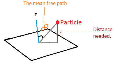 "Show that particles hitting a plane boundary have traveled a distance 2λ/3 perpendicular to the plane since their last collision, on average."