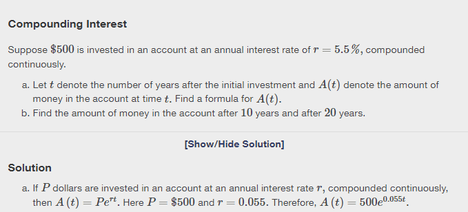 - Study the derivation of the formula A = P0ert for continuous compounding