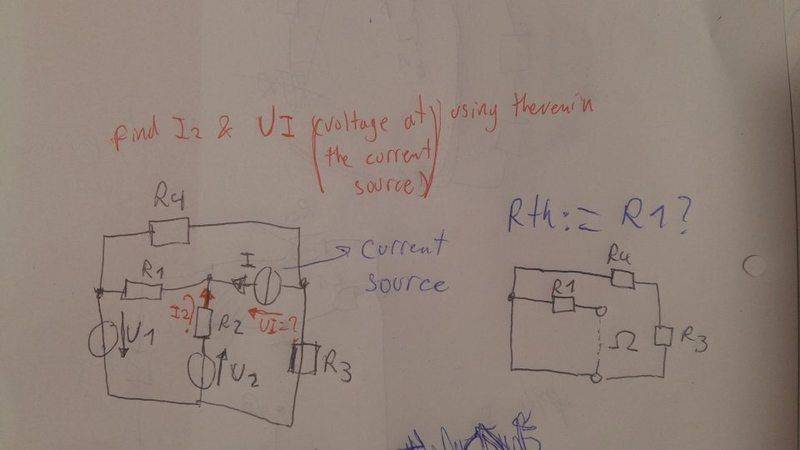 for the thevenin voltage... I took just R2 as my load and when I take out the load and fond the voltage drop for U2 which is in the same branch it gives me a non sense