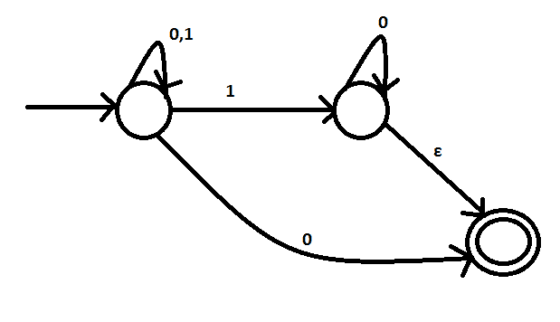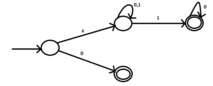 The discussion revolves around constructing a deterministic finite automaton (DFA) that recognizes the language $((0 \cup 1)^{\ast} 1 0^{\ast}) \cup 0$. Participants explore the process of converting a non-deterministic finite automaton (NFA) into a DFA, addressing various challenges and considerations in the conversion process.