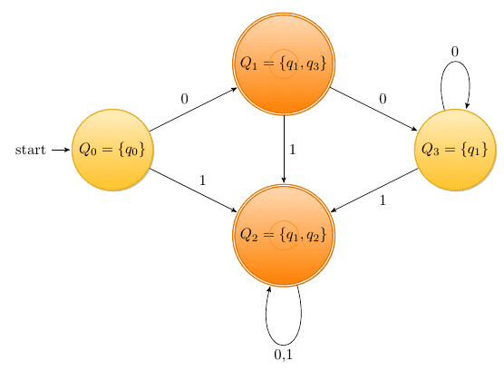 - Another participant proposes a method for labeling states and creating new states based on the sets of states reachable by reading specific inputs (0 or 1).